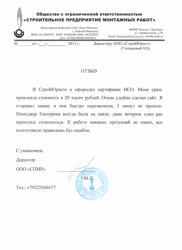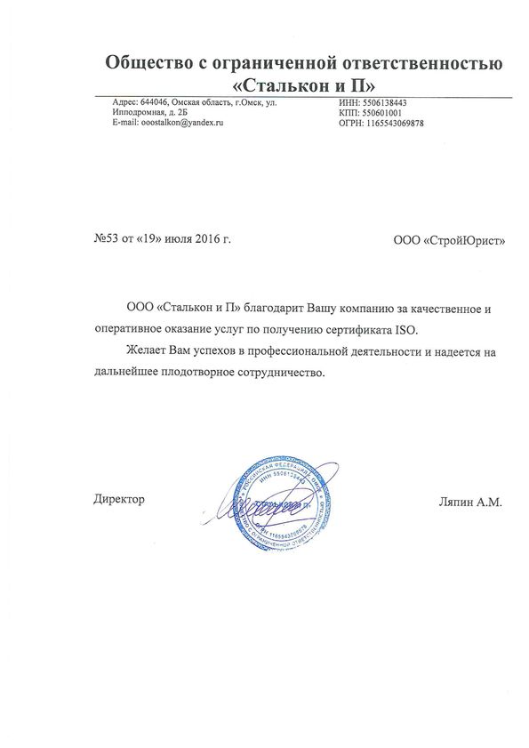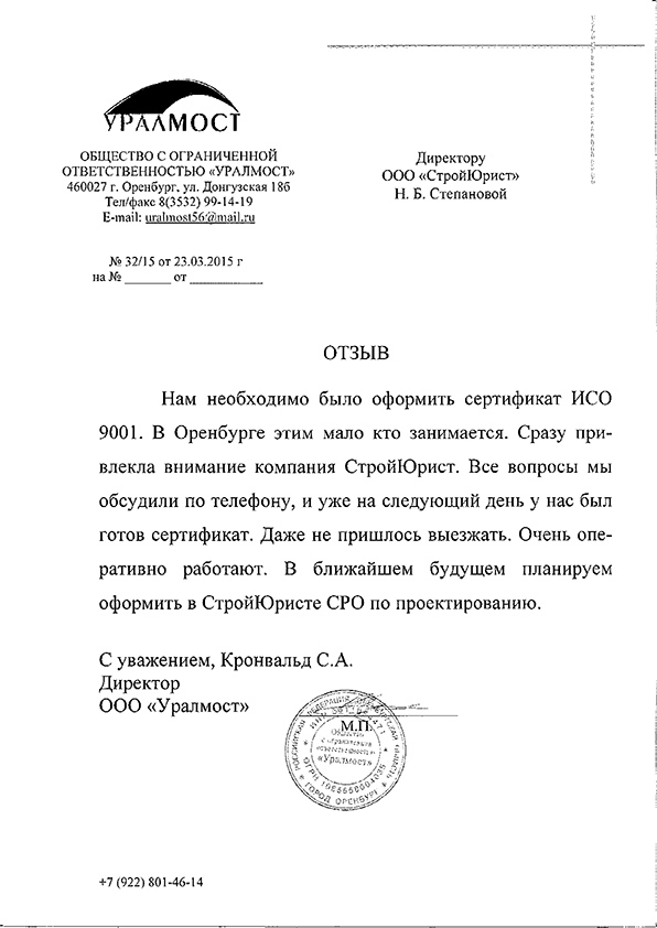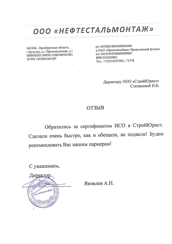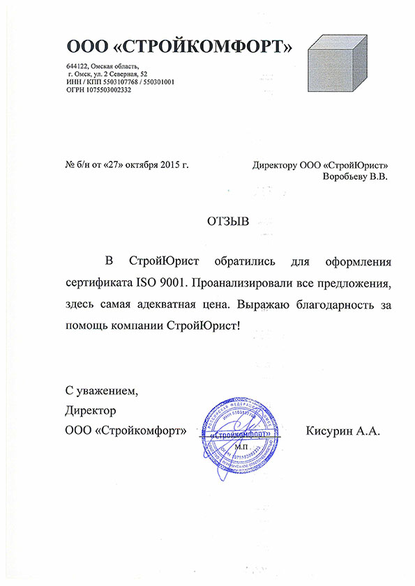 Отзывы клиентов "СтройЮрист" по ISO в Сарапуле