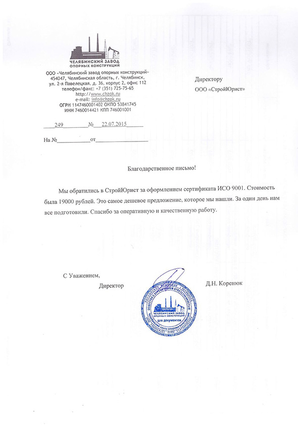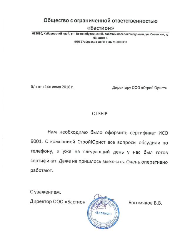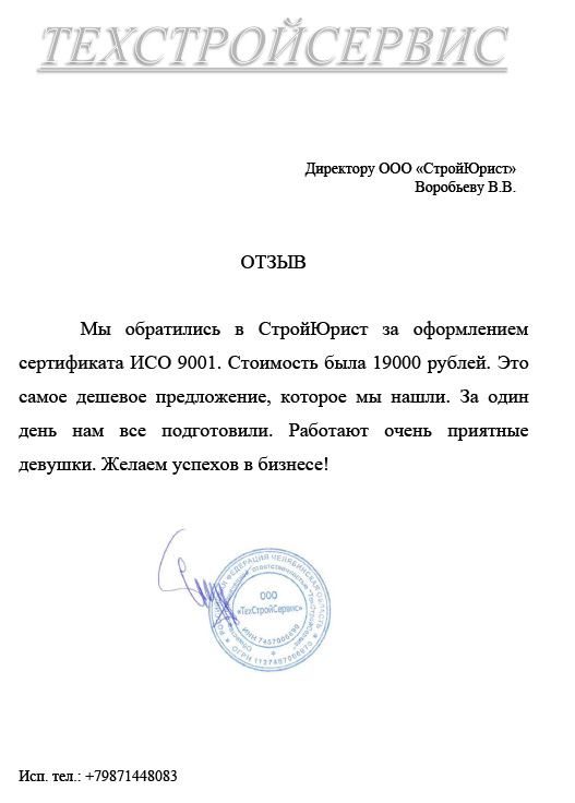 Отзывы клиентов "СтройЮрист" по ISO в Сарапуле