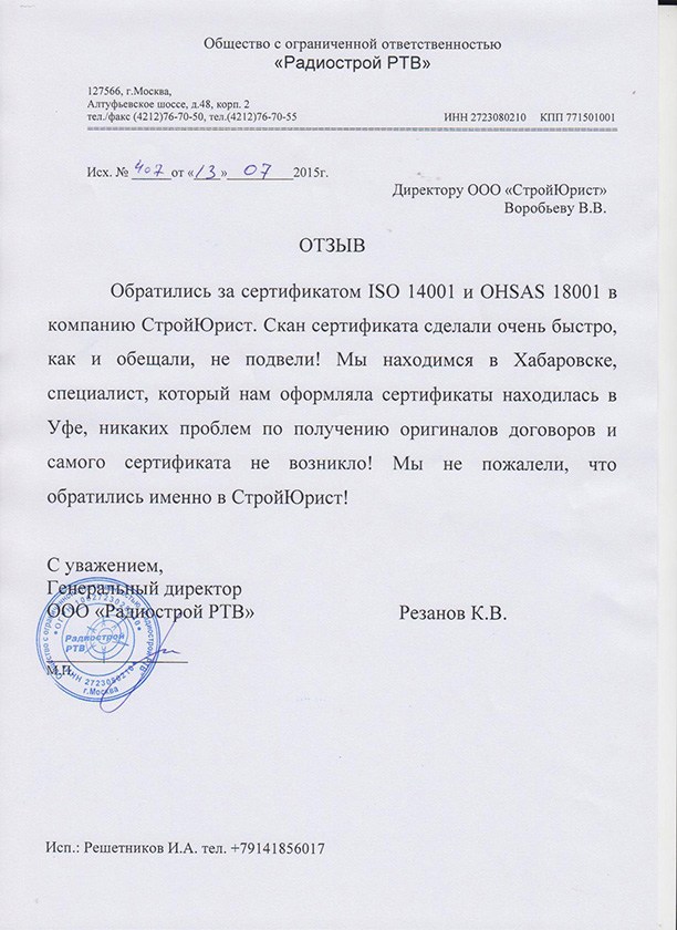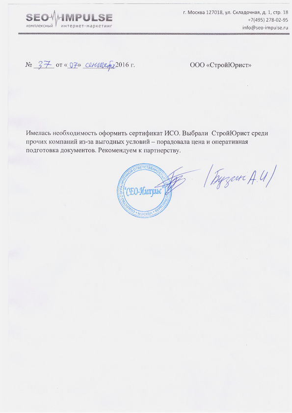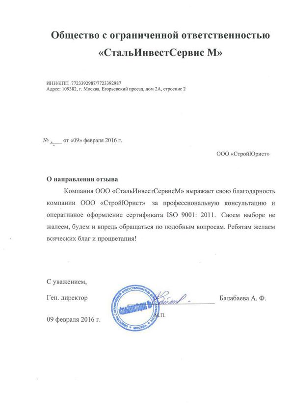 Отзывы клиентов "СтройЮрист" по ISO в Сарапуле