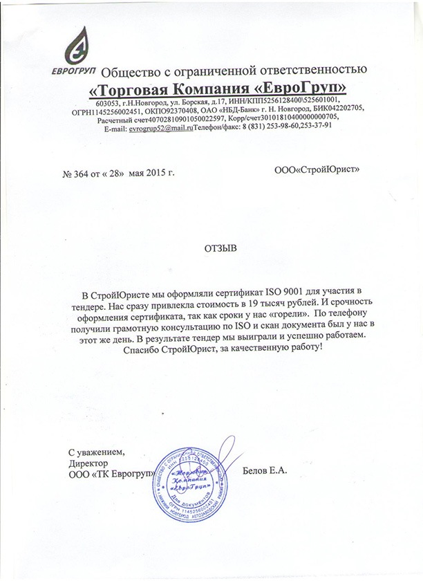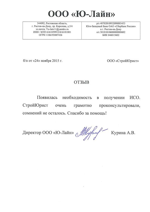 Отзывы клиентов "СтройЮрист" по ISO в Сарапуле