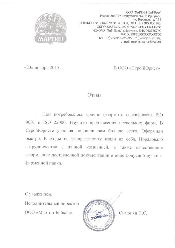 Отзывы клиентов "СтройЮрист" по ISO в Сарапуле