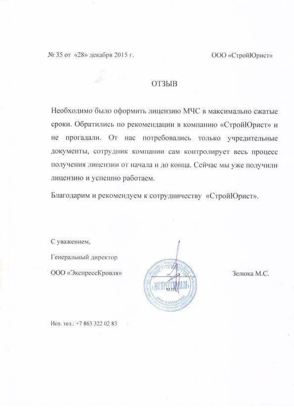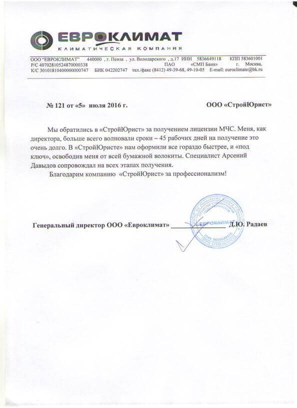Отзывы клиентов "СтройЮрист" по лицензированию МЧС в Сарапуле