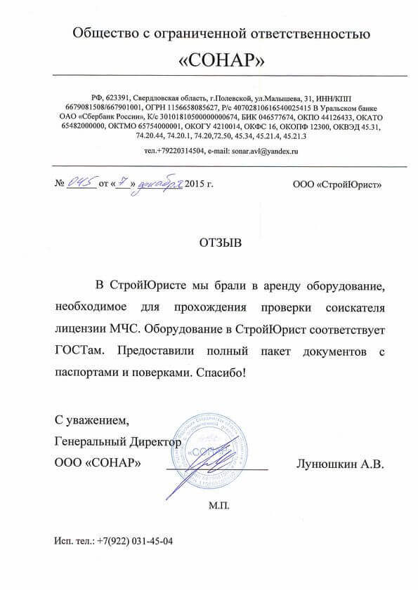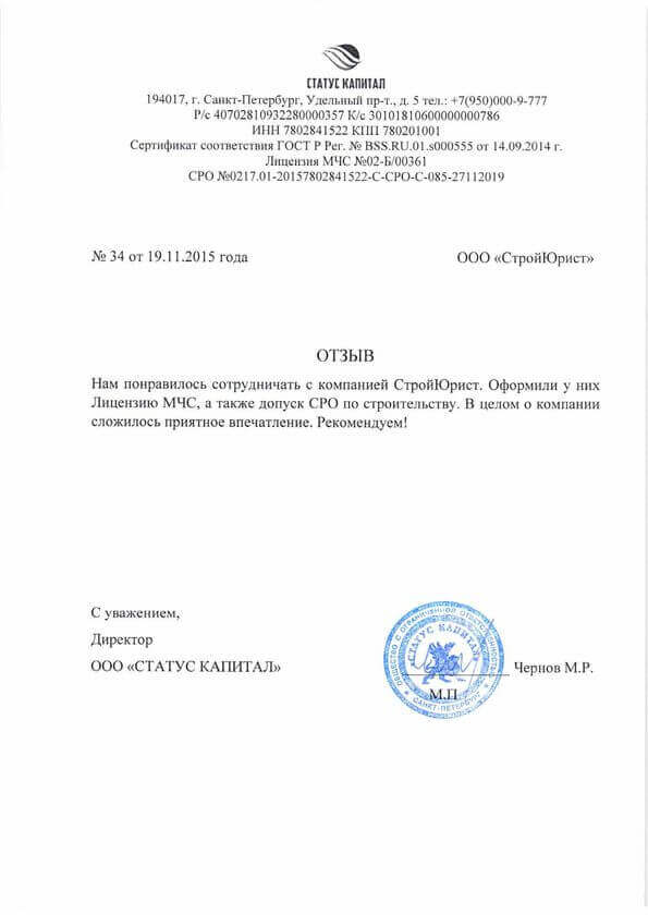 Отзывы клиентов "СтройЮрист" по лицензированию МЧС в Сарапуле