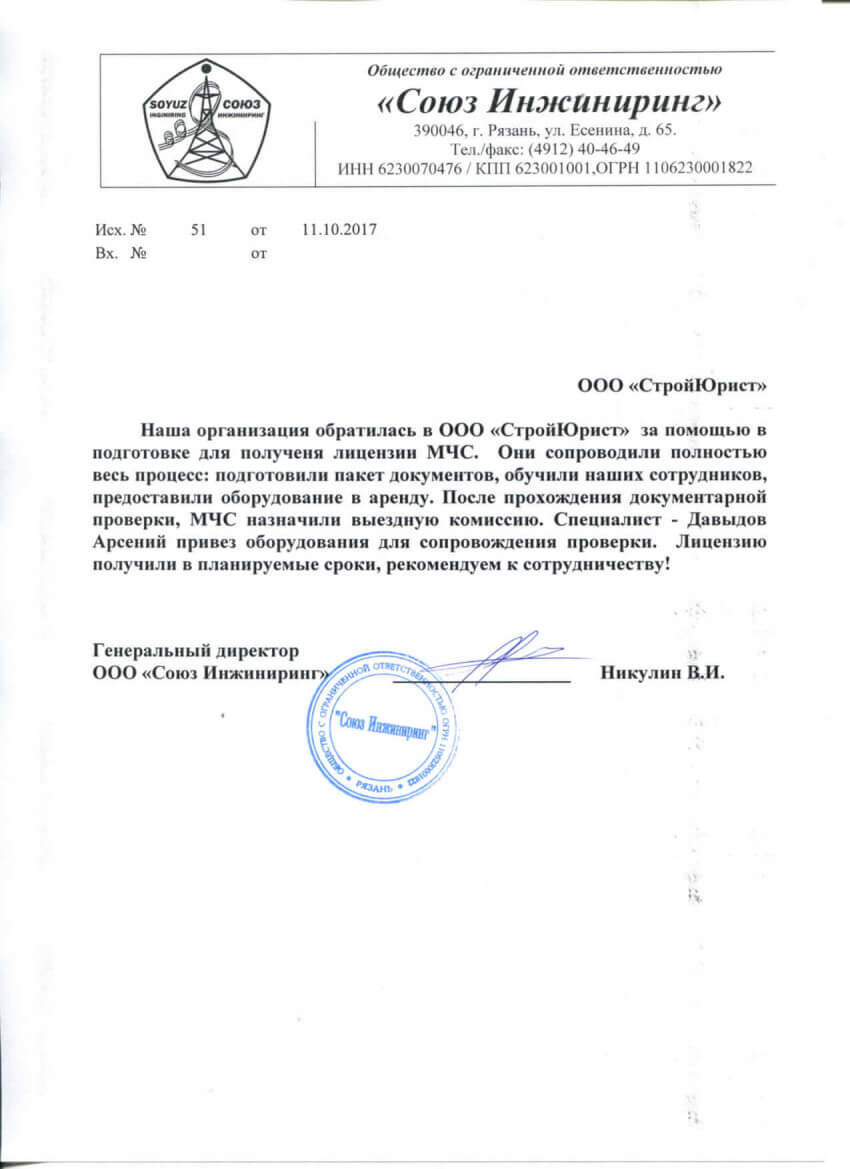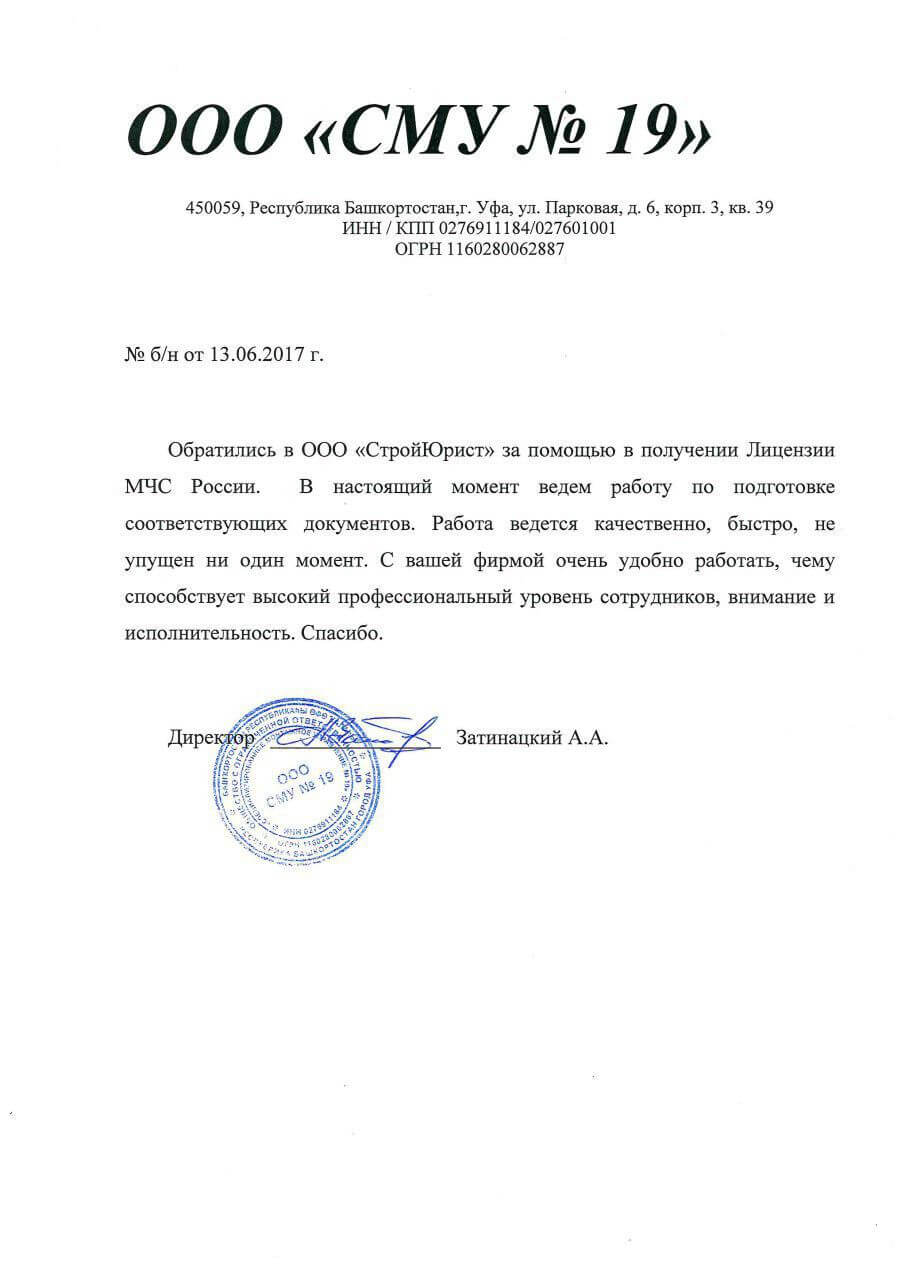 Отзывы клиентов "СтройЮрист" по лицензированию МЧС в Сарапуле