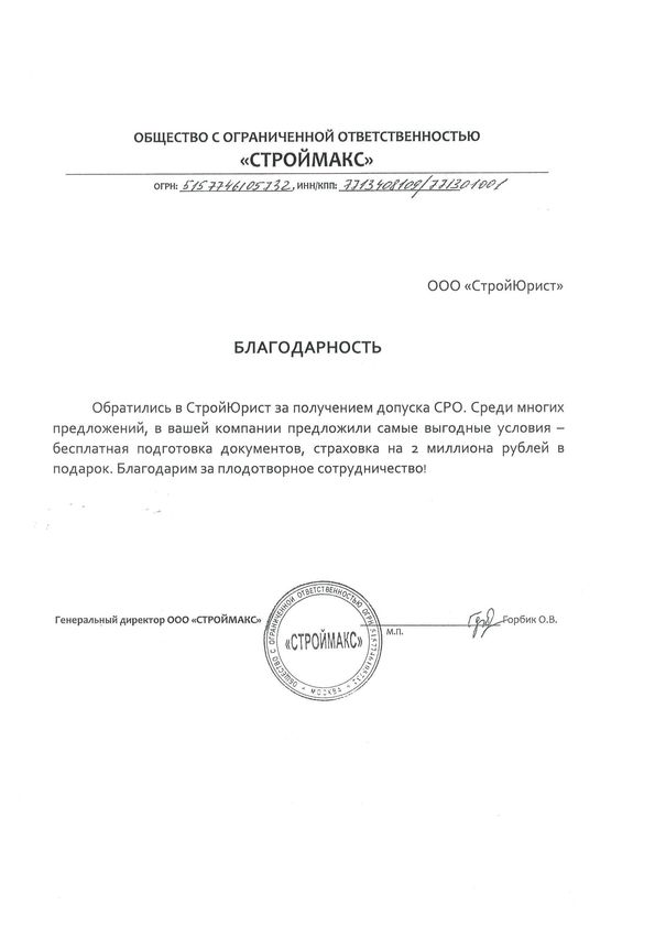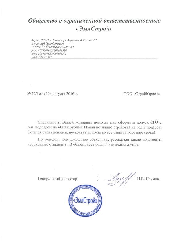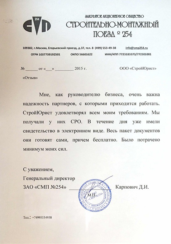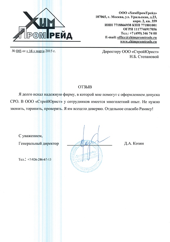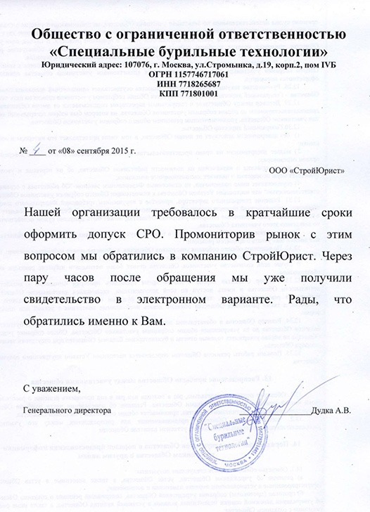 Отзывы клиентов "СтройЮрист" по вступлению в СРО в Сарапуле