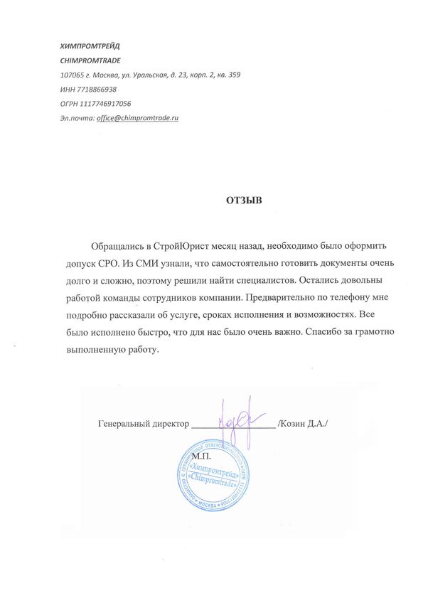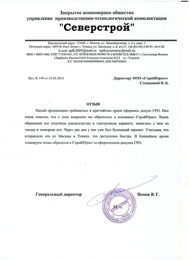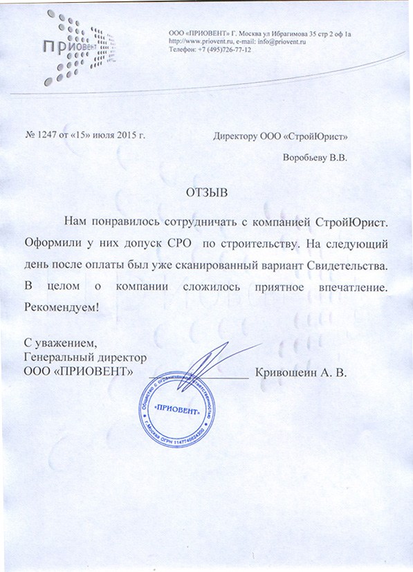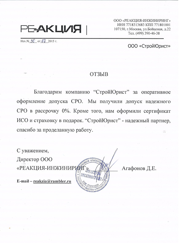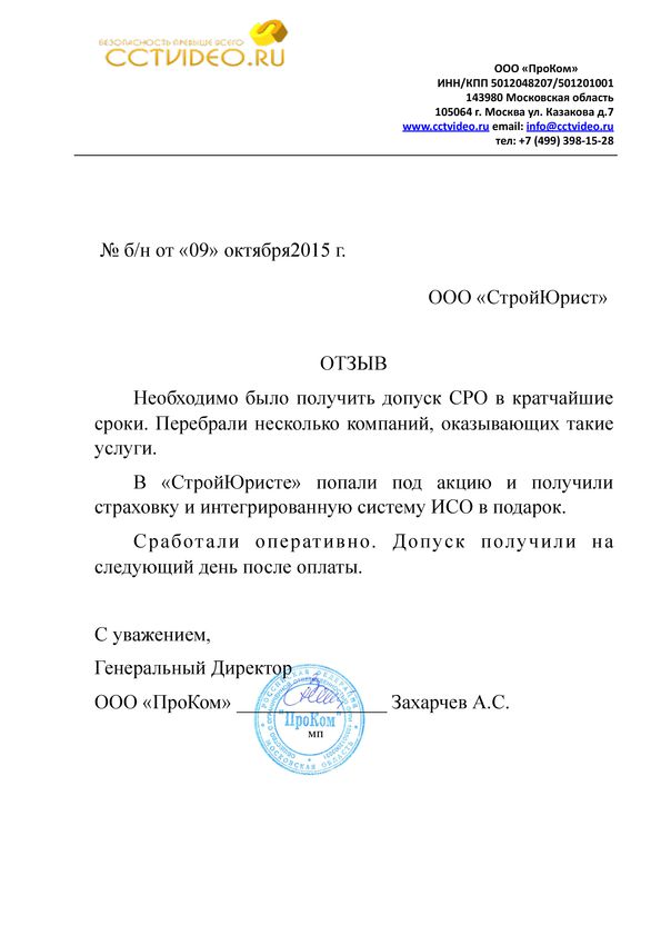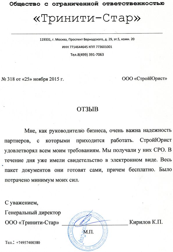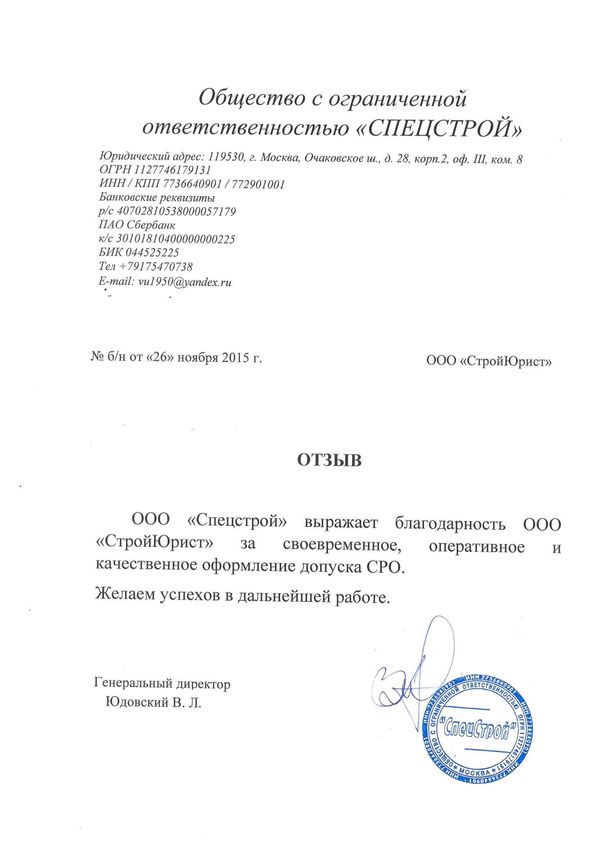 Отзывы клиентов "СтройЮрист" по вступлению в СРО в Сарапуле