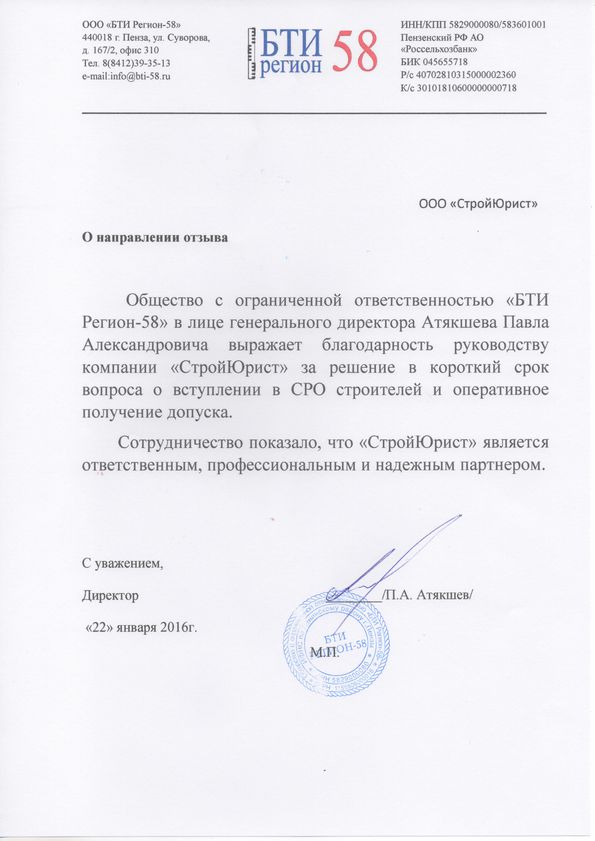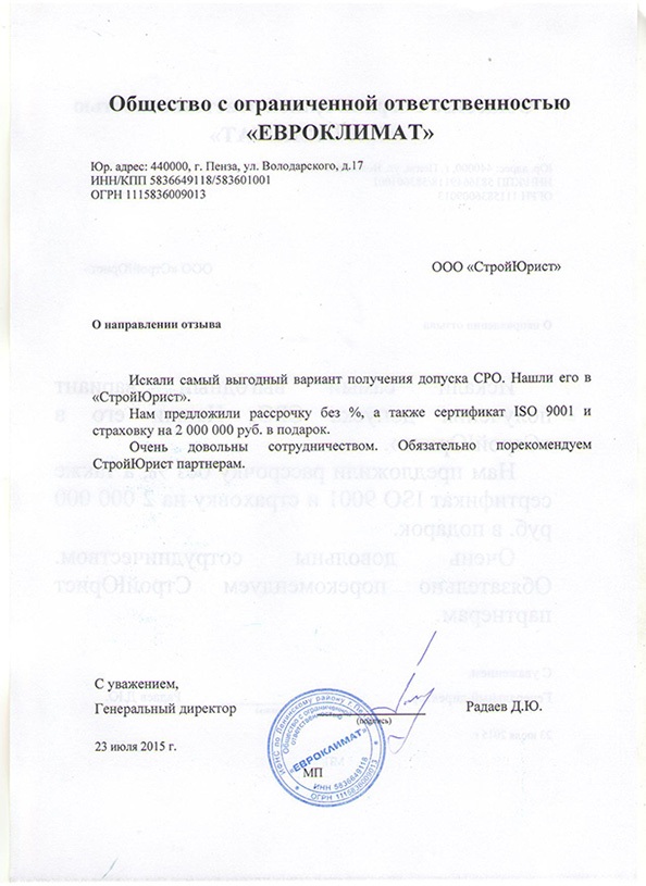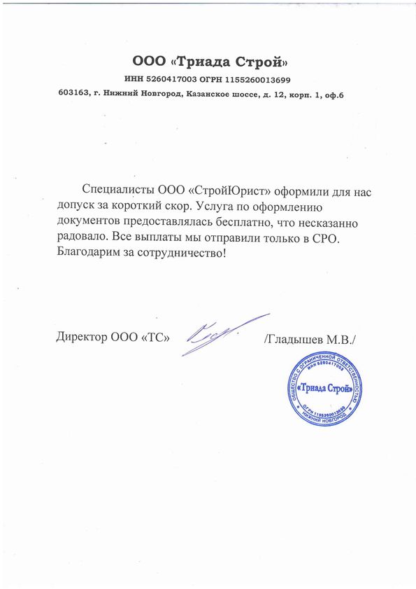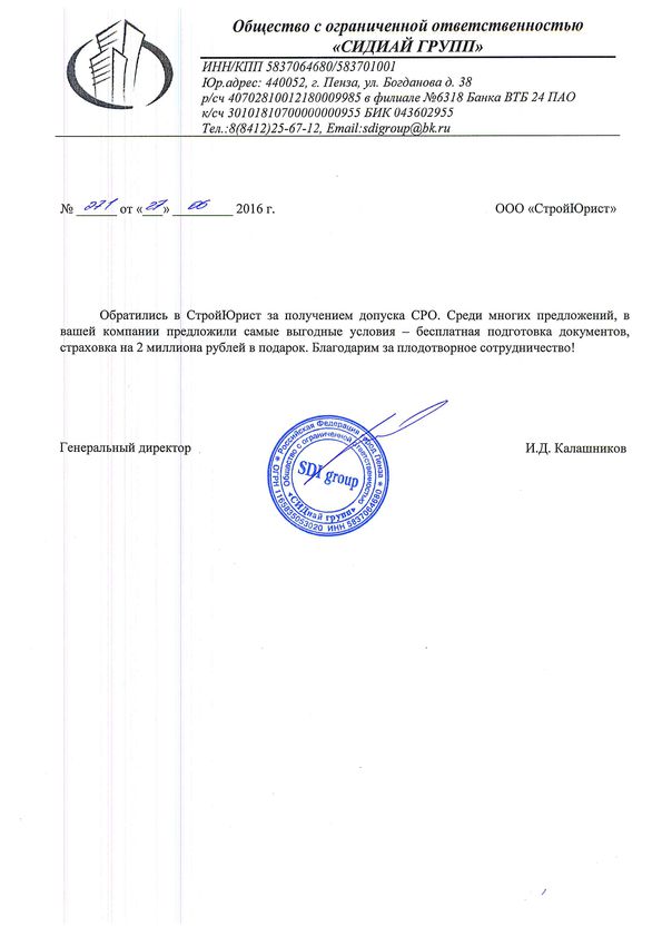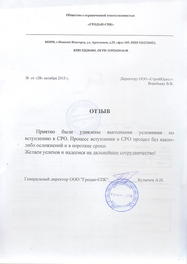 Отзывы клиентов "СтройЮрист" по вступлению в СРО в Сарапуле