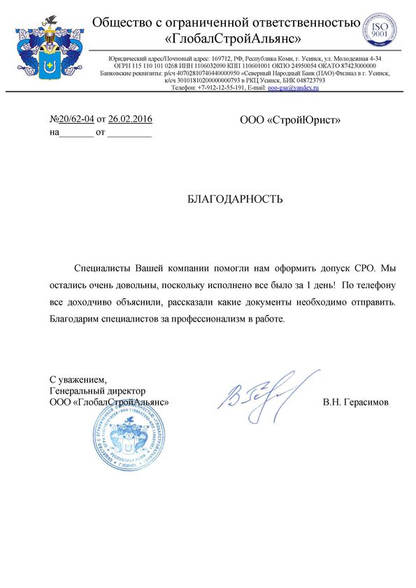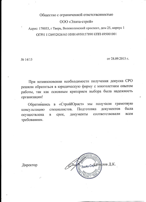 Отзывы клиентов "СтройЮрист" по вступлению в СРО в Сарапуле