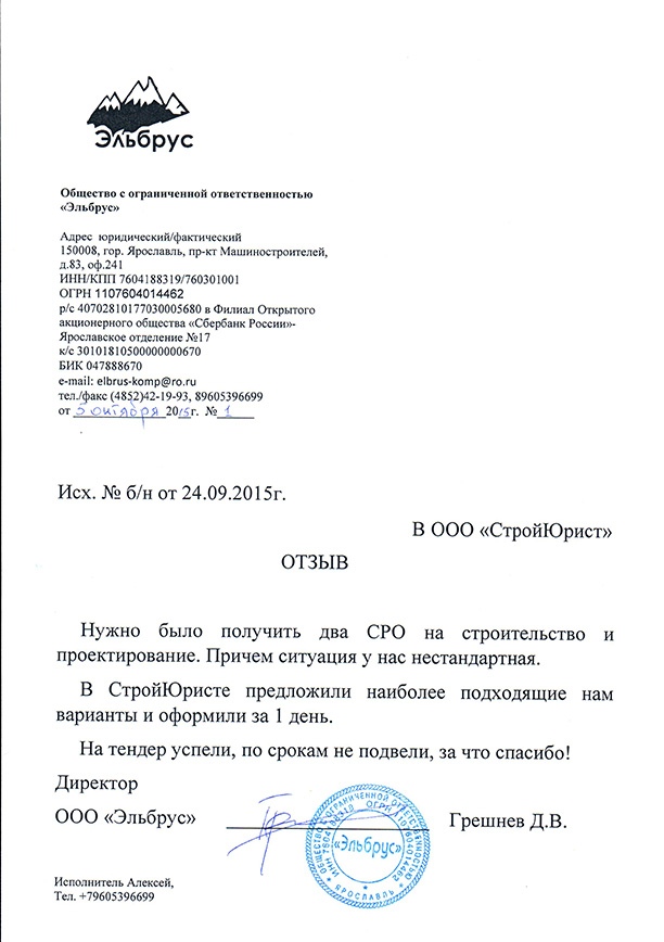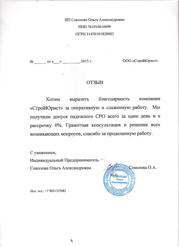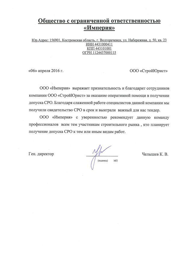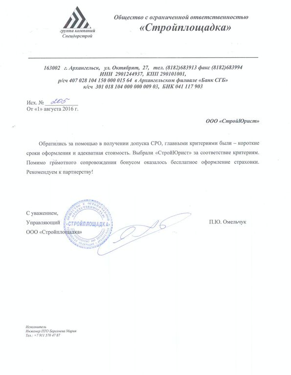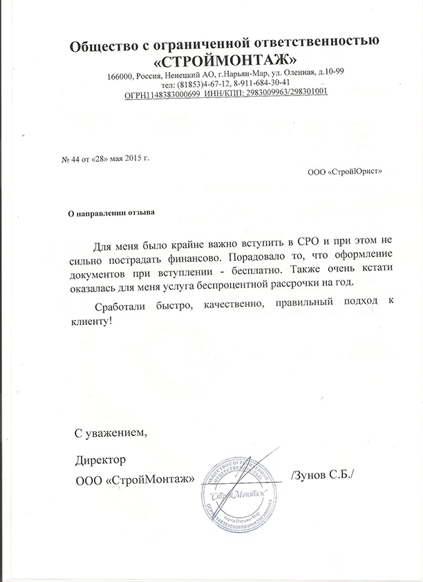 Отзывы клиентов "СтройЮрист" по вступлению в СРО в Сарапуле