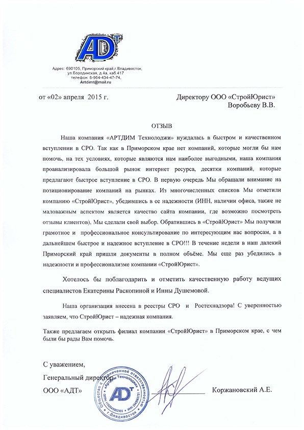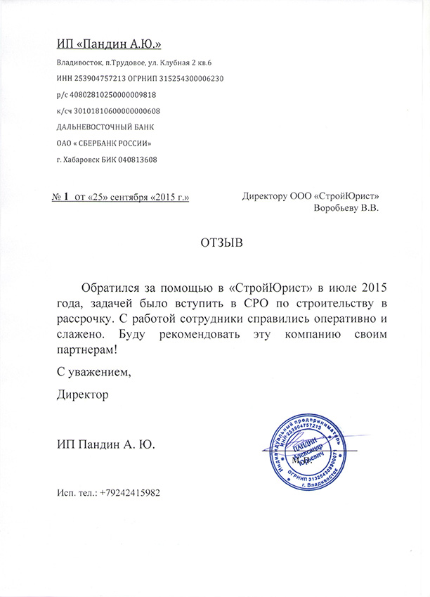 Отзывы клиентов "СтройЮрист" по вступлению в СРО в Сарапуле