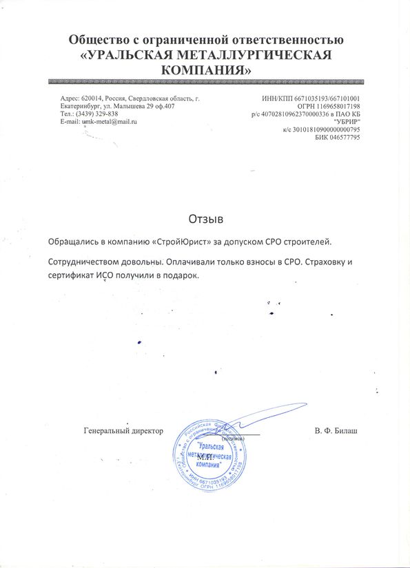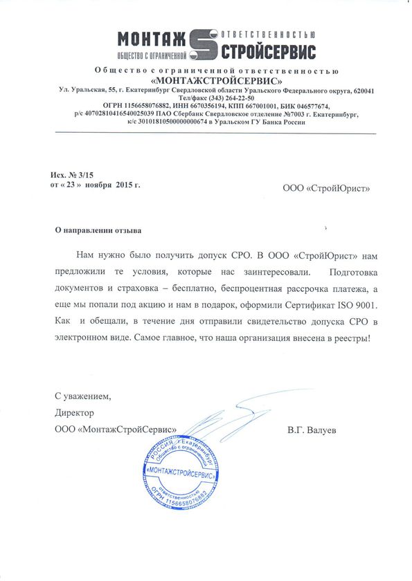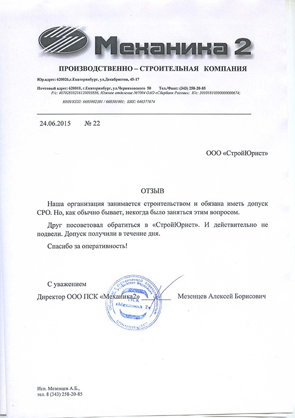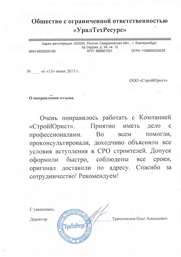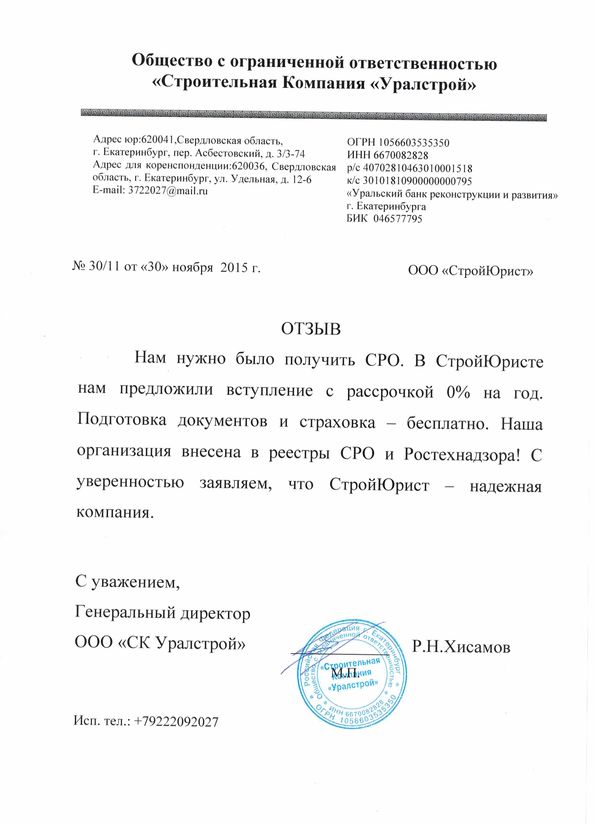 Отзывы клиентов "СтройЮрист" по вступлению в СРО в Сарапуле