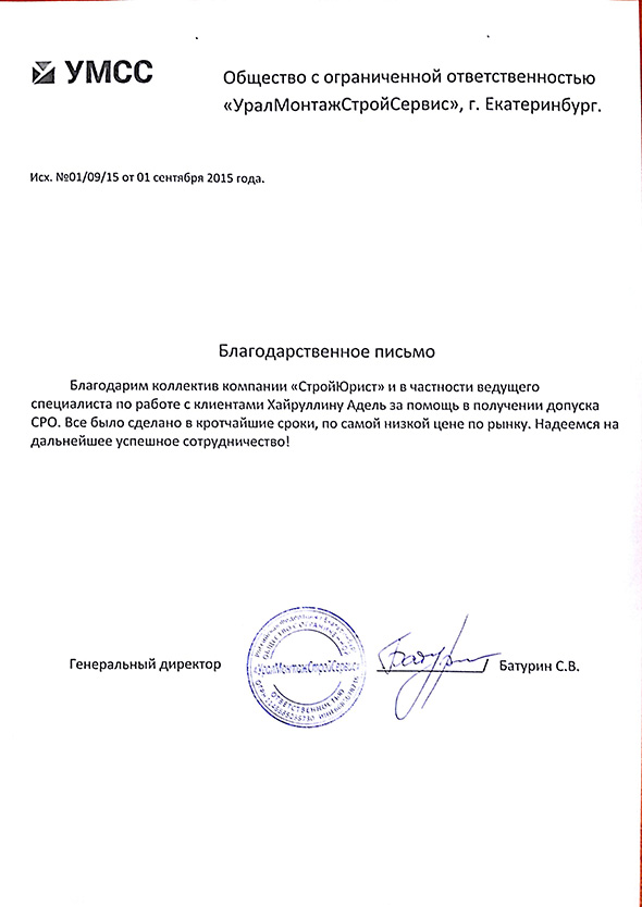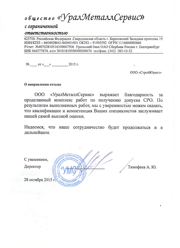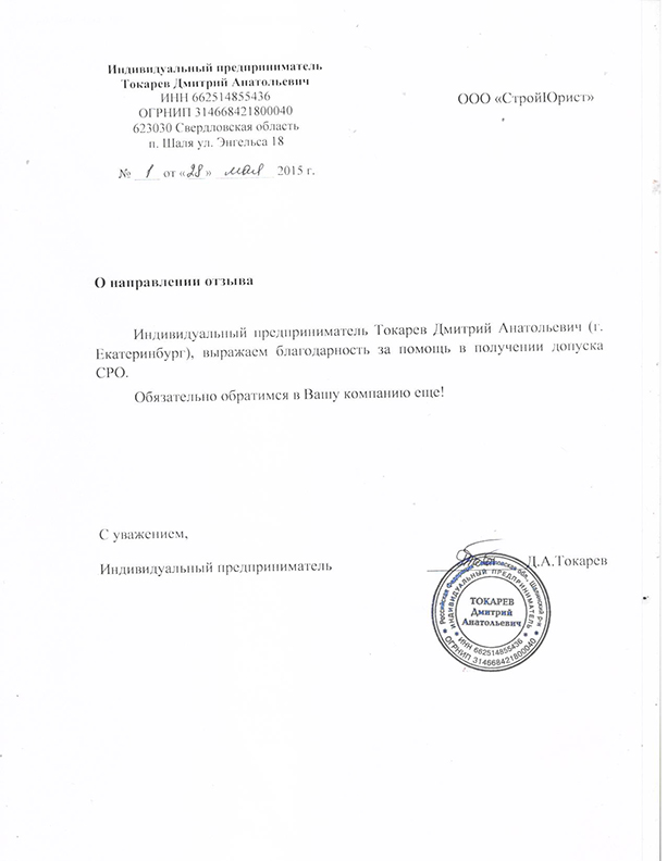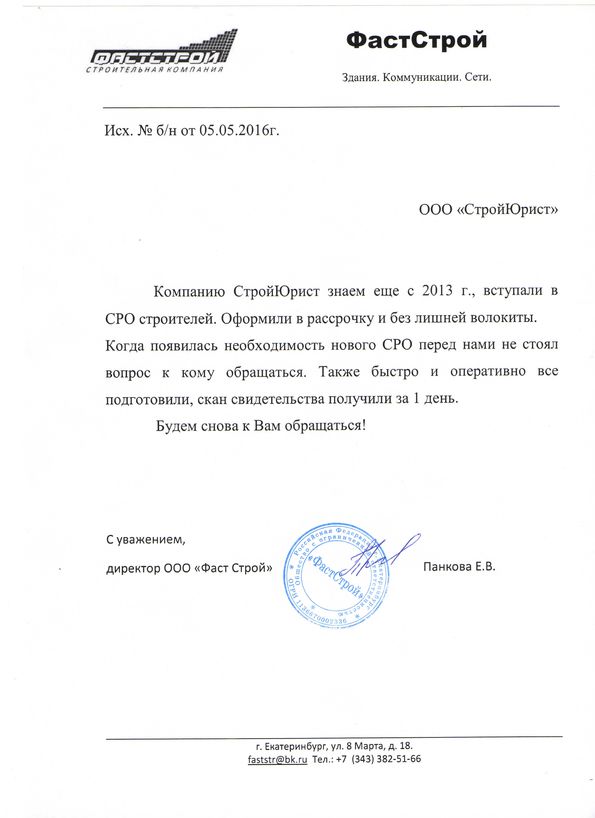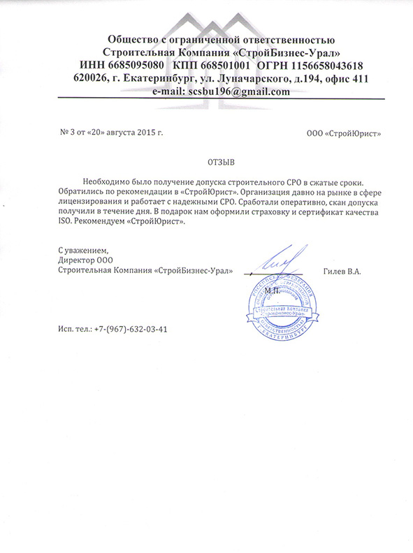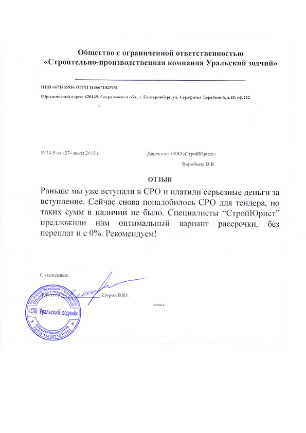 Отзывы клиентов "СтройЮрист" по вступлению в СРО в Сарапуле