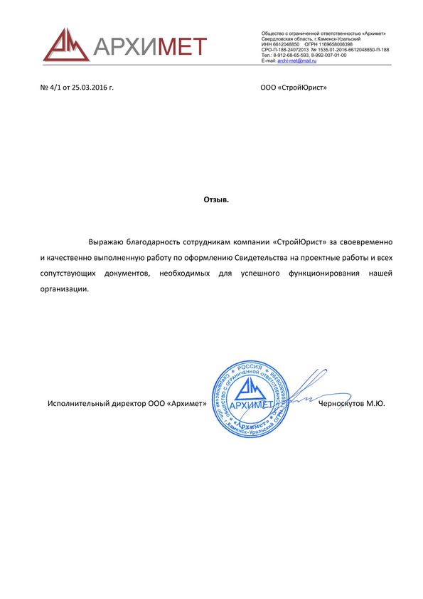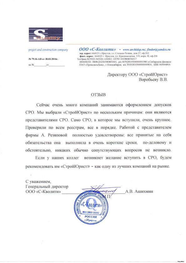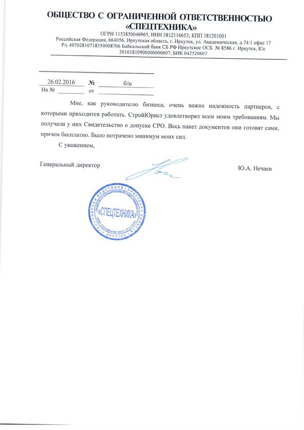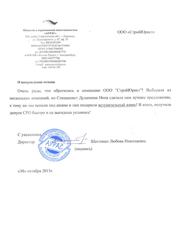 Отзывы клиентов "СтройЮрист" по вступлению в СРО в Сарапуле