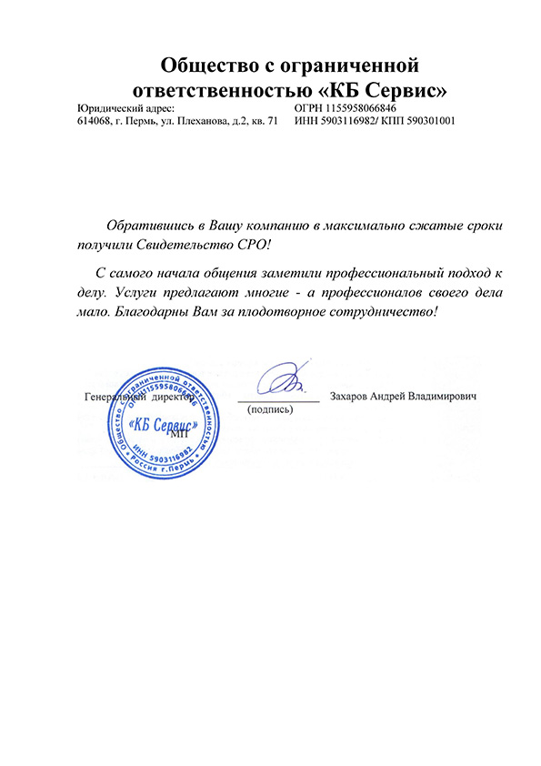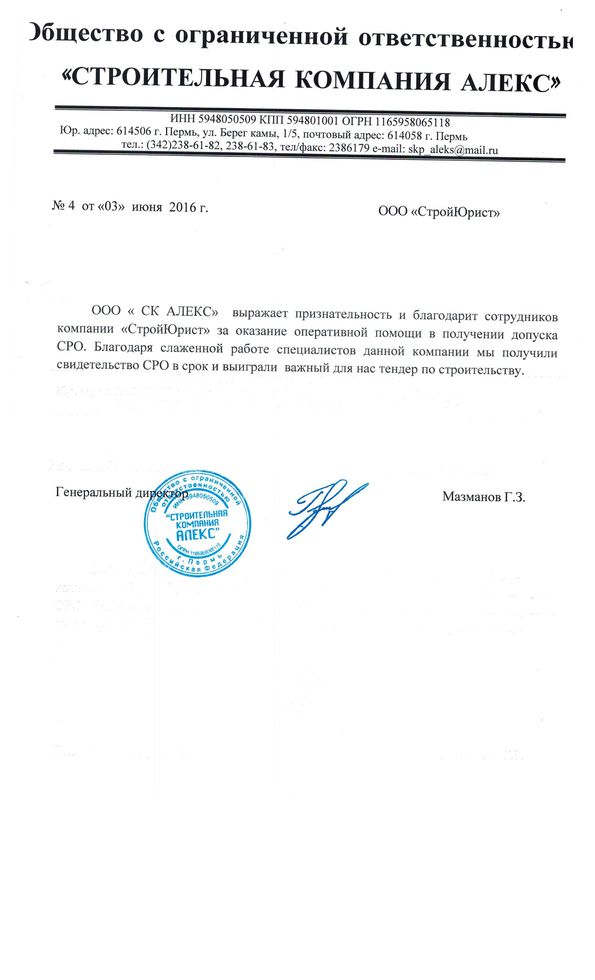 Отзывы клиентов "СтройЮрист" по вступлению в СРО в Сарапуле