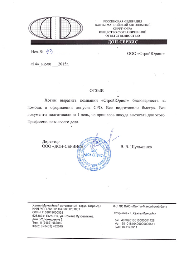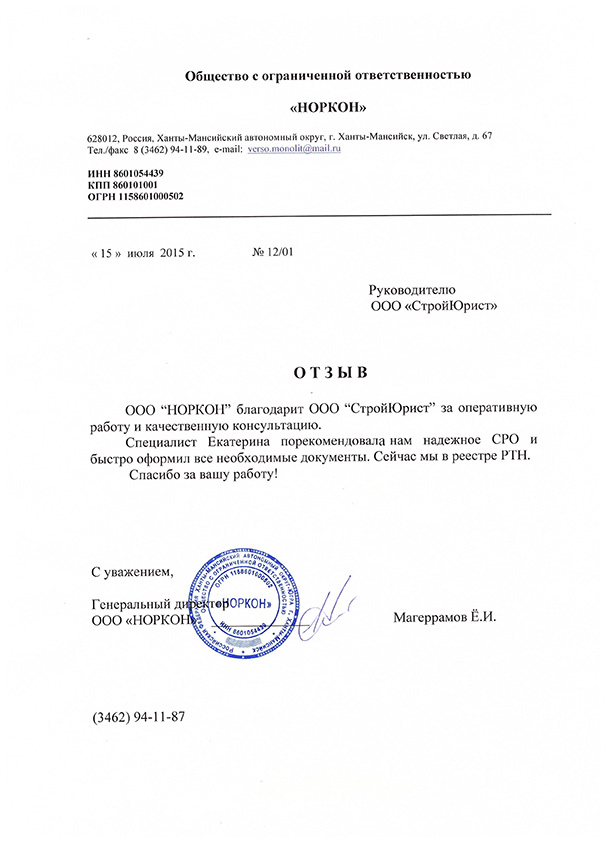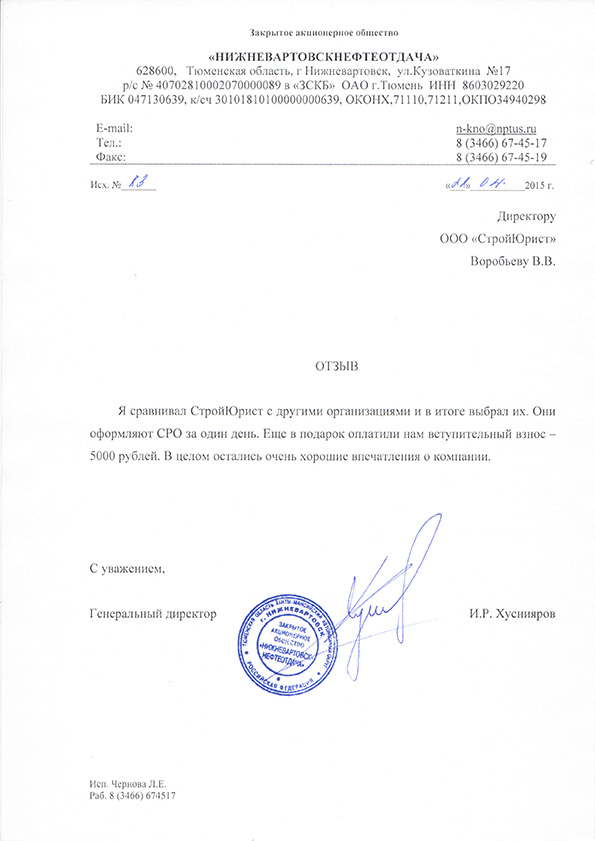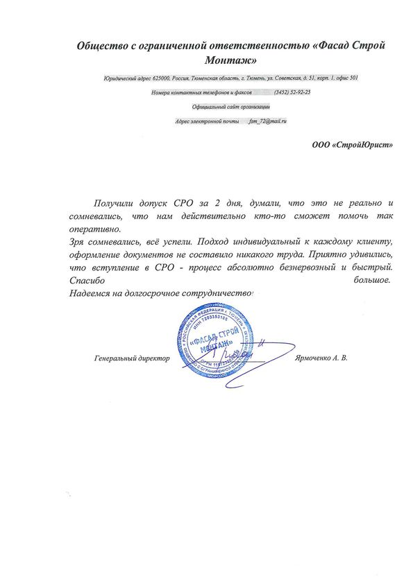 Отзывы клиентов "СтройЮрист" по вступлению в СРО в Сарапуле