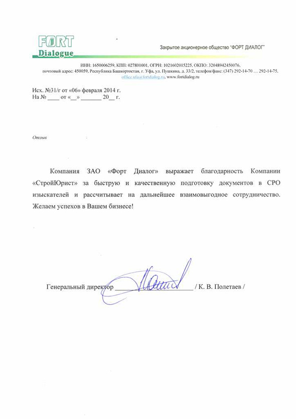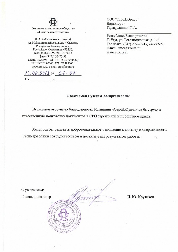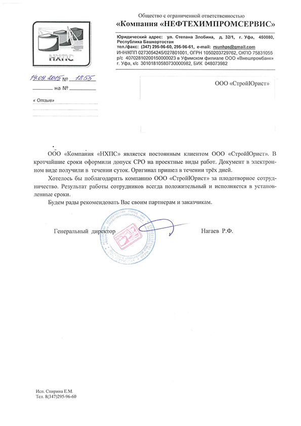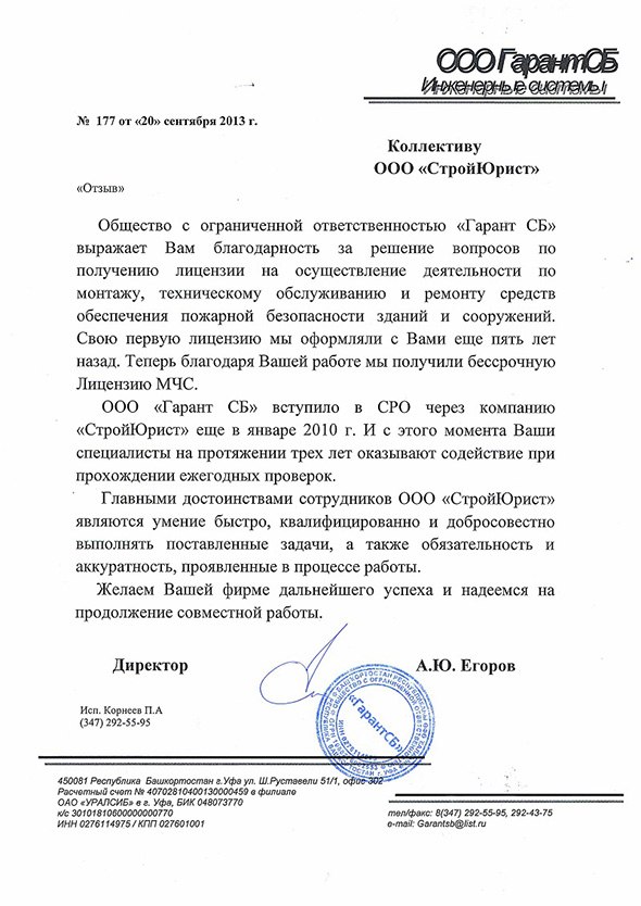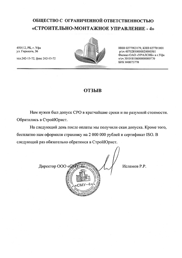 Отзывы клиентов "СтройЮрист" по вступлению в СРО в Сарапуле