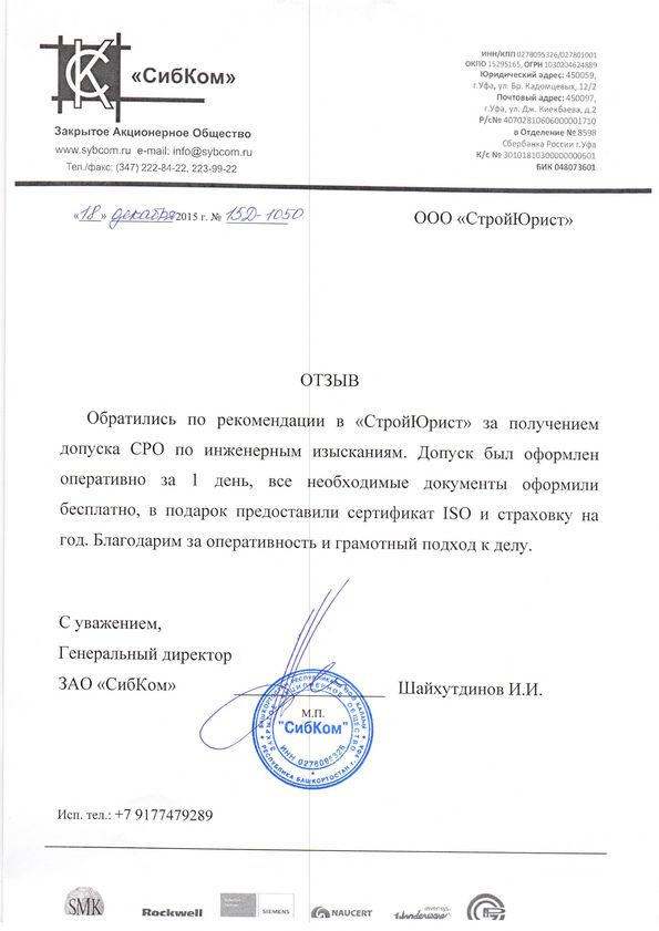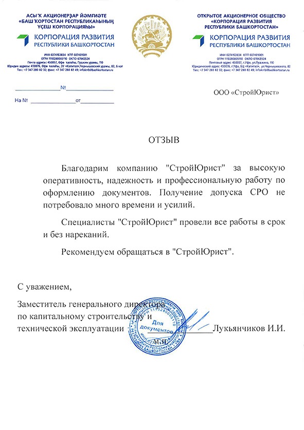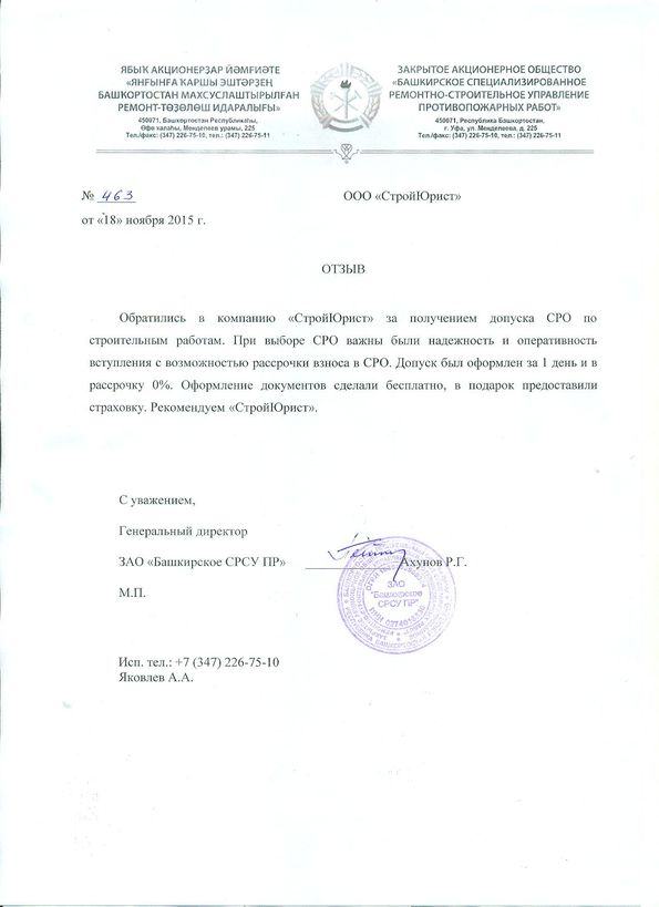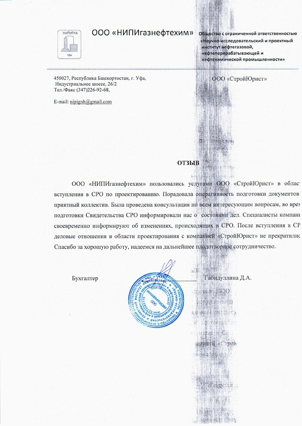 Отзывы клиентов "СтройЮрист" по вступлению в СРО в Сарапуле