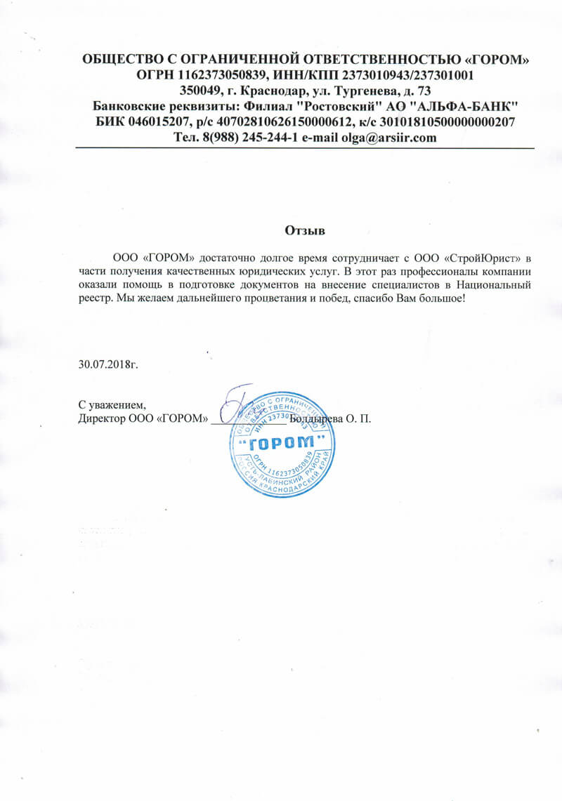 Отзывы клиентов "СтройЮрист" по вступлению в СРО в Сарапуле