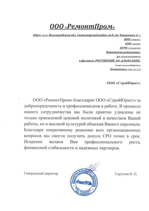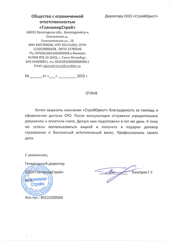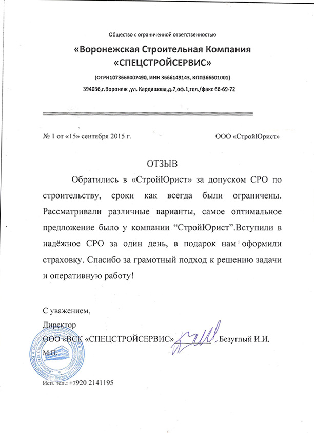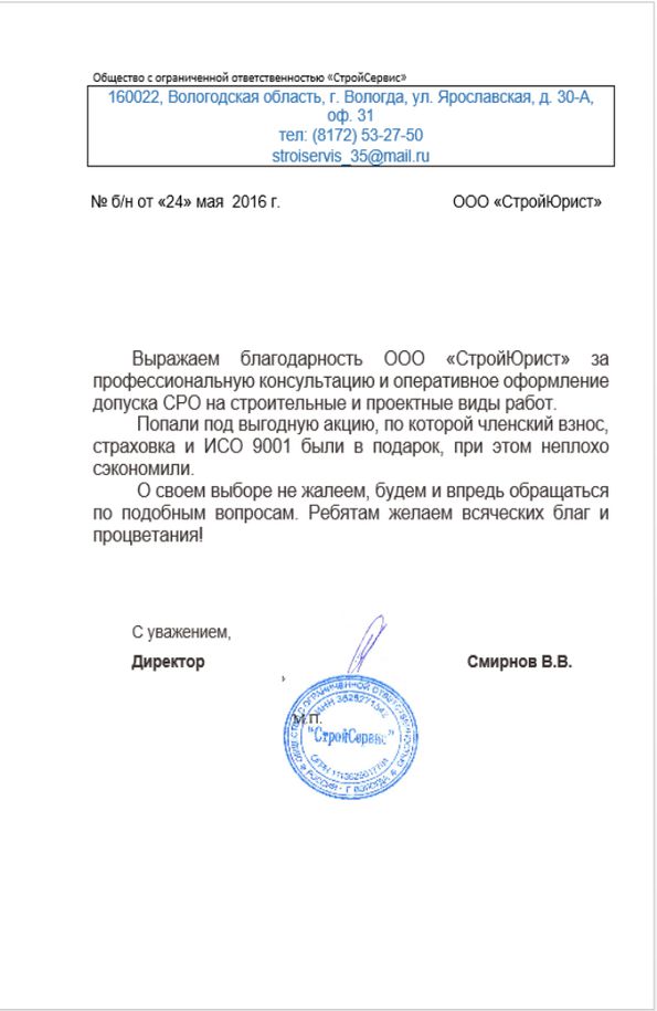 Отзывы клиентов "СтройЮрист" по вступлению в СРО в Сарапуле